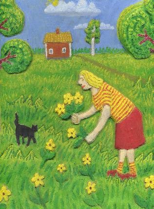 Flicka plockar blommor